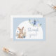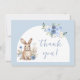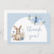 Elegante chá de "coelhinho pequeno" boêmico temático de bebê, obrigado cartas com coelhinho de água fofo em um arco boêmico coberto por flores brancas.
