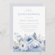 Belo Convite de festas Floral de Quinceanera Azul e Bonito, Azul e Florais Brancos. Adequado para todas as estações. Ver itens correspondentes no Niche e no nest store