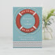 Nosso belo cartão estilo marinheiro com um salva-vidas emoldura os detalhes principais do seu casamento, incluindo a data e local, dentro de uma bela combinação de cordas e salva-vidas.