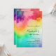 Convite de aniversário com fundo de aquarelas com cores do arco-íris.
