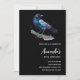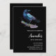 Convite de aniversário com uma adorável aquarela desenhada por um corvo. As cores azul escuro e roxo vibrante acentuam a beleza deste pássaro.