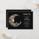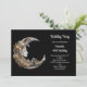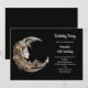Um convite de aniversário com uma bela ilustração. Um rosto feminino na lua rodeado por lindas flores.
