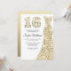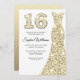 Convite de Belo Vestido Dourado Aniversário de 16 Anos Sweet 16