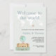 "Bem-vindo ao mundo" O convite para chás de fraldas é a forma perfeita de convidar amigos e familiares a compartilharem o entusiasmo de sua nova jornada. Apresentando um tema viagem completo com um mapa mundial, tons terrenos, malas viagem, e um globo, este convite realmente captura o espírito da aventura. Com seu design único e atraente, este convite certamente impressionará seus convidados e tornará seu evento inesquecível. Encomenda agora e deixe a aventura começar!