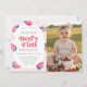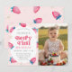 Celebrate your little one’s big milestone with this sweet strawberry "Berry First Birthday" photo invitation. Featuring a delicate pink watercolor border with hand-painted berries and floral accents, this design creates a whimsical frame for a custom photo of your birthday girl. The retro-inspired typography adds a trendy, playful touch to the "Berry First" headline, while the clean layout below ensures all your party details are clear and easy for guests to read. Perfect for a summer fruit-themed party or a garden picnic, this high-quality template is easy to personalize for a truly special first birthday keepsake.