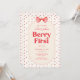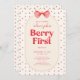 This berry first birthday invitation features pink red watercolor strawberries, tiny hearts, and a sweet bow detail for a soft and playful look. Designed as a berry 1st birthday invite, it works beautifully as strawberry birthday invitations for a baby girl boy neutral birthday in any season. Personalize the name date and party details to create a berry sweet keepsake for a milestone birthday celebration. Add your details and personalize yours today.