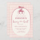 Convite Berry First Birthday Pink Red Bow Strawberry