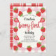 Celebre o seu primeiro aniversário de morango com este doce convite de morango! Apresentando uma fotografia adorável do seu bebê e sotaques vibrantes de morango, é a maneira perfeita de dar o tom para uma nova e frutuosa celebração. Personalize com detalhes do partido para torná-lo exclusivamente seu. Ideal para aniversários de verão, festas de jardim, ou festas bonitinhas de bagas que todos amarão. Envie sorrisos e entusiasmo com este encantador convite!