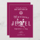 O convite para morcegos cor-de-rosa com lindas tipografias brancas tem flores brancas que podem ser movidas e redimensionadas com as suas letras. O trabalho de arte botânico pode ser mudado de cor com a sua inscrição. Altere facilmente a cor de fundo neste convite de bat mitzvah simples e exclusivo. Este modelo é facilmente personalizado para qualquer tema de festa de aniversário rosa-quente, ameixa, framboesa.