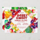 Convites de aniversário divertidos Berry Sweet que apresentam uma variedade de bagas de aquarela desenhada manualmente em cores suculentas e brilhantes. Personalize facilmente com seus próprios detalhes