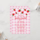 Convite de aniversário de morango doce de berço com fundo de fruta vermelha e estilo de prancheta de xadrez.