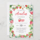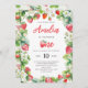 Berry Sweet Girl Red Invitation, Adorável e elegante frutado de aquarela e modelo de morango floral com primeiro convite de aniversário com roteiro elegante, para menina virando um. Fácil de personalizar o modelo de convites de aniversário.