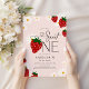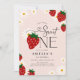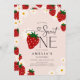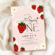 Berry Sweet One 1st birthday party invitation. Strawberry Sweet One invite. Cute trendy design in red and blush pink. Features strawberries, daisy flowers, arch and modern typography script heart font. Perfect for a stylish first girls bday celebration. Personalize with your own details. Printed Zazzle invitations or instant download digital printable template.