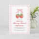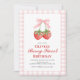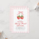Aniversário de morango Berry Sweet com arco rosa e gingham rosa.