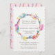 Convite Bho feather miçanga aquarela cor rosa batizada