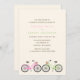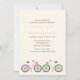 Na moda e convites divertidos apresentam uma bela ilustração de duas bicicletas em cores pastel moles, perfeito para qualquer casamento de primavera ou verão.