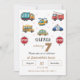 Comece o grande dia do seu pequeno com este adorável convite de aniversário temido pelo transporte! Apresentando ilustrações bonitas e coloridas de um ônibus escolar, caminhão de bombeiros, caminhão de lixo, e até mesmo de helicóptero, este design divertido é perfeito para crianças e crianças que amam veículos. Personalize facilmente o nome, a idade e os detalhes da festa do seu filho. Excelente para uma festa de aniversário com tema de caminhão, festa de transporte ou festa de aniversário de veículo.