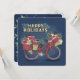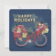 Uma bicicleta vermelha brilhante carregada de prezos, só a maneira de enviar desejos calorosos a vizinhos, amigos e família! O painel personalizável na parte traseira é totalmente ilustrado para que você possa adicionar mensagens ou detalhes do evento.