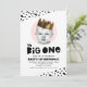 Big One First Birthday Modern Photo Black and White design. O convite mais legal para um dia especial. Adicione uma bela coroa de ouro 3D na cabeça do seu filho para um convite único e original. Completo com gráficos e fontes modernos. Altere a foto usando nosso modelo fácil de usar (pro-ponta: recorte o quadrado de fotos perto do que você quer que seja mostrado). Correspondente no verso. Clique em 'Editar usando Ferramentas de Design para mover a coroa para trabalhar com a sua imagem ou para a mesma aparência que o meu mockup — use a ferramenta 'Remover fundo' na foto. Sinta-se à vontade para me contactar com quaisquer perguntas e faça uma festa de excelente! ©Marisu Valencia
