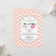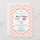 Um convite de aniversário de casamento com um design moderno - lábios cor-de-rosa glamourosos e uma ilustração de bigode masculino com visual retrô. Com as palavras Sr. e Sra. O fundo é um padrão de chevron em cor de pêssego. Uma moldura decorativa sobreposta com as informações da sua festa dentro. Personalize com os detalhes da sua festa de aniversário.