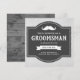 Convide seus padrinhos com este cartão de pedido rústico com um bigode clássico e tipografia vintage em um fundo de pergaminho cinza. Basta adicionar os detalhes do evento neste modelo fácil de usar para torná-lo um convite único. Vire o cartão para revelar uma textura de madeira de celeiro rústico no verso do cartão.
