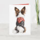 Esta encantadora ilustração captura a vista posterior de um cão Papillon adornado com um lenço vermelho festivo com flocos de neve brancos. A pelagem luxuosa do cão, misturando tons de marrom, preto e branco, cria um contraste marcante contra o fundo branco. O detalhe caprichoso na textura da pelagem e o toque divertido do acessório de Natal evocam um espírito de inverno caloroso e alegre. Perfeito para os amantes de cães e entusiastas das festas de fim de ano!