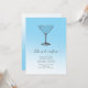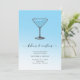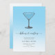 The fresh blue palette and martini illustration feel relaxed, playful, and perfect for a warm weather celebration. The back of the card includes a clear weekend itinerary, making it easy for everyone to stay excited and organized from arrival to farewell brunch.