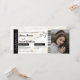 Um bilhete de casamento de passe monograma moderno com um simples fundo branco e castanho, uma fotografia do casal noivo, um avião com trilha de loop, e um modelo de convite personalizado para casamento fácil de personalizar. Não se esqueça de atualizar o texto do monograma atrás.