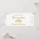 Convite Bilhete Elegante Quinceanera Dourado e Branco