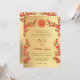 Esta versão tem um título para os nomes dos PAIS. Ramos orientais vermelhos e duas borboletas em um fundo dourado. Convite de casamento chinês tradicional com um símbolo de dupla felicidade vermelha. Com um modelo de texto chinês tradicional no verso.