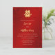Convite Bilíngue | Simples Casamento Dourado chinês vermel