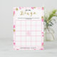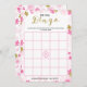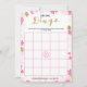Um delicado bingo de chá de panela floral moderno, o design apresenta um padrão floral rosa e dourado, este cartão é personalizado com o nome da noiva e a data do chá.