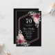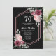 Este elegante convite de aniversário da flora apresenta uma flor rosa-rosa-burro com folhas e um arranjo verde num pano de fundo preto.