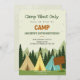 "Birthday invitation with a camping theme. The front features illustrated tents and pine trees, reading 'Camp Vibes Only, Hike on Over to Camp, Joseph's 10th Birthday.' The back is solid green. The overall tone is adventurous and outdoorsy."