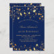 A 40th (or any age) birthday party invitation for both him and her. A navy blue background decorated with faux gold stars. Personalize and add a name and party details.