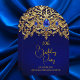 Convite Birthday Party Royal Blue Gold Lace Diamonds Gems