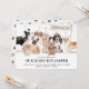 Um convite de aniversário de cachorrinho com cães brancos em chapéus de festa.