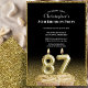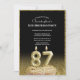 This black and gold printed glitter 87th birthday invitation is perfect for a man's birthday party. This design features cupcakes with candles and gold glitter on a black background, and is a nice design for a fun celebration of a milestone birthday, or any year.