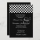 Black and White Checks Wedding Metallic 32 Este design com seu padrão marcado mistura elementos contemporâneos e clássicos, e faz um convite de casamento elegante.