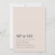 Apresentamos nosso elegante convite de festas "Sip and See", perfeito para celebrar seu pequeno estilo. Apresentando um fundo bege suave, as palavras "Sip and See" são cuidadosamente colocadas no canto inferior esquerdo, deixando espaço amplo abaixo para você personalizar os detalhes do evento. Do lado oposto, um simples mas moderno arco-íris preto e bege. Quer você esteja enviando convites digitais ou solicitando versões impressas para o correio, este design oferece uma sensação de eterno e calor para seu encontro especial.