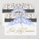 Convites de primeira comunhão azul preto e dourado para meninos. Convites de primeira comunhão damasco azul preto. Personalize com os detalhes do seu evento, estilo de letra, tamanho e cor da letra e texto.
