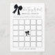 Black Bow Bingo Bridal Shower Game Card.. Available digitally or printed. She’s tying the knot is in a stylish set script and the rest of the text you can easily personalise.