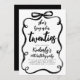 In this 30th birthday party invitation, a handwritten black brush lettering dances across the page with expressive strokes and playful movement, making the message "She's Tying Up Her Twenties" feel lively, modern, and full of personality. The curly black bow frame pulls everything together into one bold, cohesive composition. Designed for a honoree who appreciates modern design with a touch of artistic flair.
