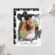 This coquette graduation thank you card features your photo surrounded by a hand-drawn black bows. The reverse side features a black background with a bow pattern. Personalize it for your needs. You can find matching products at my store.