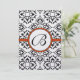 Convite Black Damask Side Borders Orange Trim Weds
