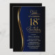 Convide seus amigos e entes queridos com este moderno convite de aniversário 18, preto, ouro e azul surpresa. A área de texto personalizável neste modelo de convite permite que você inclua facilmente todos os detalhes necessários para sua celebração especial de aniversário, incluindo as informações de data, hora, local e RSVP. Uma variedade de tipos de papel e estilos de canto estão disponíveis para seus convites exclusivos, juntamente com a opção de download se você preferir um formato digital.