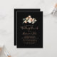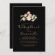 Este convite formal de casamento floral real preto é perfeito para um evento moderno. A design apresenta cor-de-água rosa, pincel e flores brancas elegantes com folhas esmeraldas verdes.