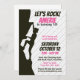 Vamos! Este design é perfeito para a festa de escalada de uma garota. O convite apresenta uma silhueta de uma garota com pulgões afro escalando uma montanha ou uma parede de rock. Texto preto, cor-de-rosa e preto agarram sua atenção para tornar sua festa inesquecível. Todo texto pode ser editado para personalização máxima.