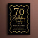 Convite Black Gold 70th Birthday Wavy Border