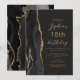 Convite Black Gold Agate Script Dark 18th Birthday